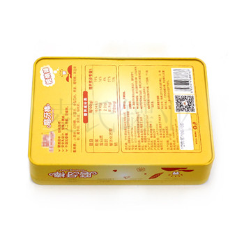 此款寶寶磨牙棒馬口鐵盒包裝,為富有創(chuàng)意性的長(zhǎng)方形結(jié)構(gòu),蓋子為內(nèi)縮口,底部為內(nèi)卷線扣底設(shè)計(jì),整體材質(zhì)是國(guó)產(chǎn)0.23mm的馬口鐵料沖壓而成,盒身與蓋都有激凸處理,將“磨牙棒”幾字做雕刻處理,凸顯產(chǎn)品LOGO標(biāo)識(shí)。四個(gè)面都印刷上產(chǎn)品的具體信息,底部可印刷生產(chǎn)日期、條形碼等信息,方便消費(fèi)者了解產(chǎn)品。